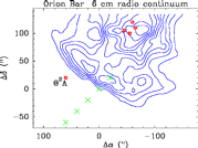 Cloud and the H II region around the Trapezium stars. The radiation from